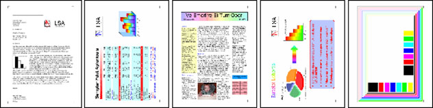 • Documento de prueba estándar: Utilización de una página estándar impresa en un entorno controlado con configuraciones de impresora predeterminadas. Esto garantiza que las configuraciones permanecerán constantes durante las diferentes fases de la prueba, independientemente de la plataforma o el tamaño del papel. El documento de prueba trabaja tanto con tamaños de hoja de carta como con A4.